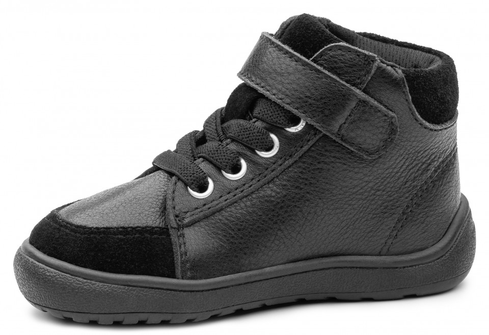 Dívčí podzimní barefoot boty kombinují sportovní vzhled s elegancí. Díky univerzálnímu designu je snadno sladíte s různými outfity. Svršek je vyroben z kvalitní hladké a broušené kůže v černé barvě, která dodává botám sofistikovaný dívčí vzhled.